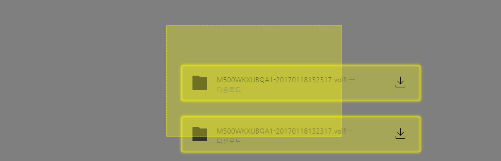 6. 아래 사진처럼 노란 드래그가 된다면 원하는 파일들을 드래그 후, 엔터를 누르면 다운로드가 됩니다.