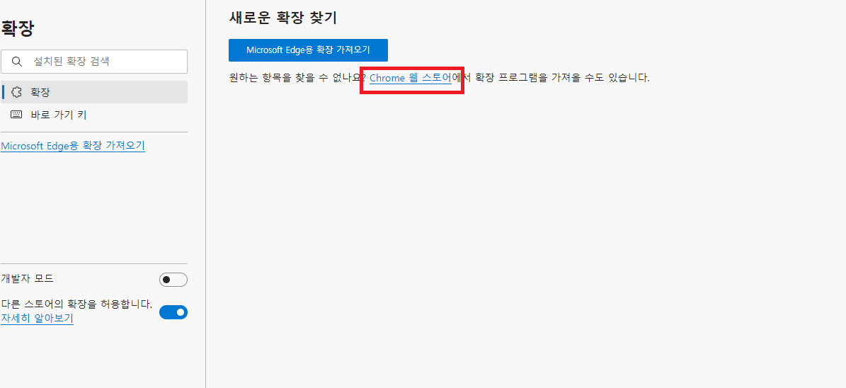 크롬, 마이크로스프 엣지, 웨일 브라우저 모두 공통적으로 크롬 웹 스토어를 호환하여 이용 가능합니다.