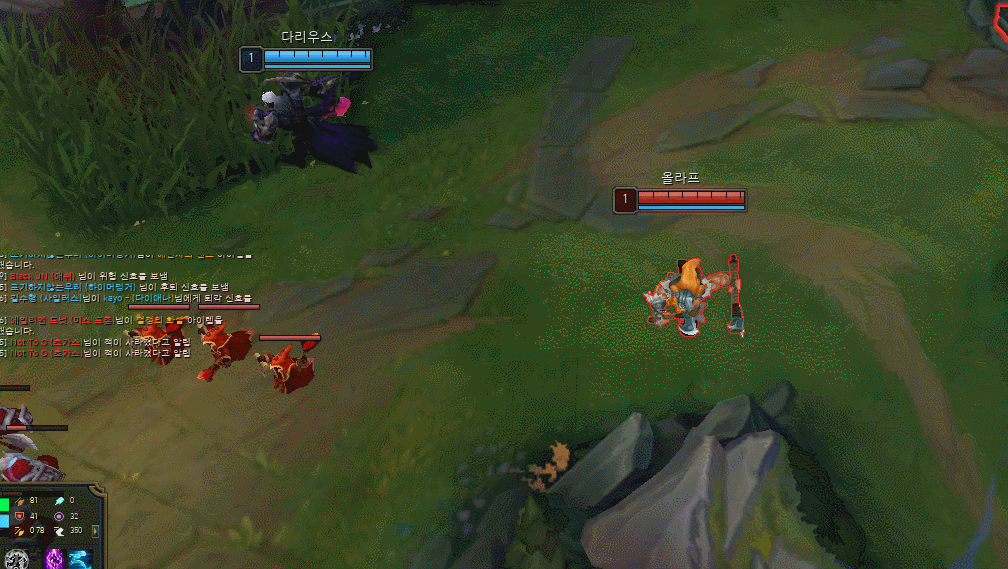 어짜피 다리우스는 상대 정글이 갱을 온게 아니라면 레벨차, 템차이가 나기때문에 섣불리 싸움을 걸지 못합니다.