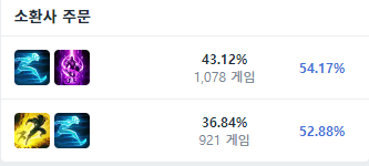 올라프는 다른 챔피언들과 다르게 이동기가 없습니다. 통계에서도 보면 소환사주문은 점멸+유체화, 텔레포트+유체화를 채용합니다.