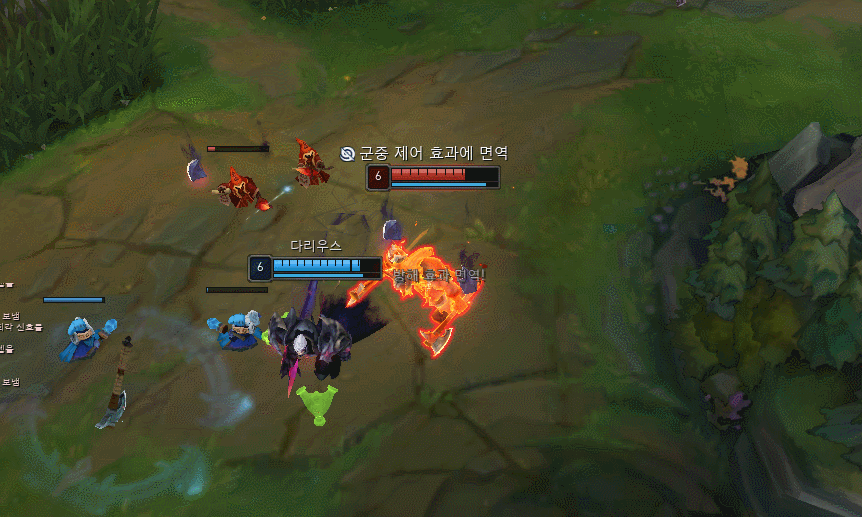 6레벨 입니다. CC가 모두 면역이기에 슬로우, 다리우스의 E또한 올라프에게는 그저 장식이 됩니다.