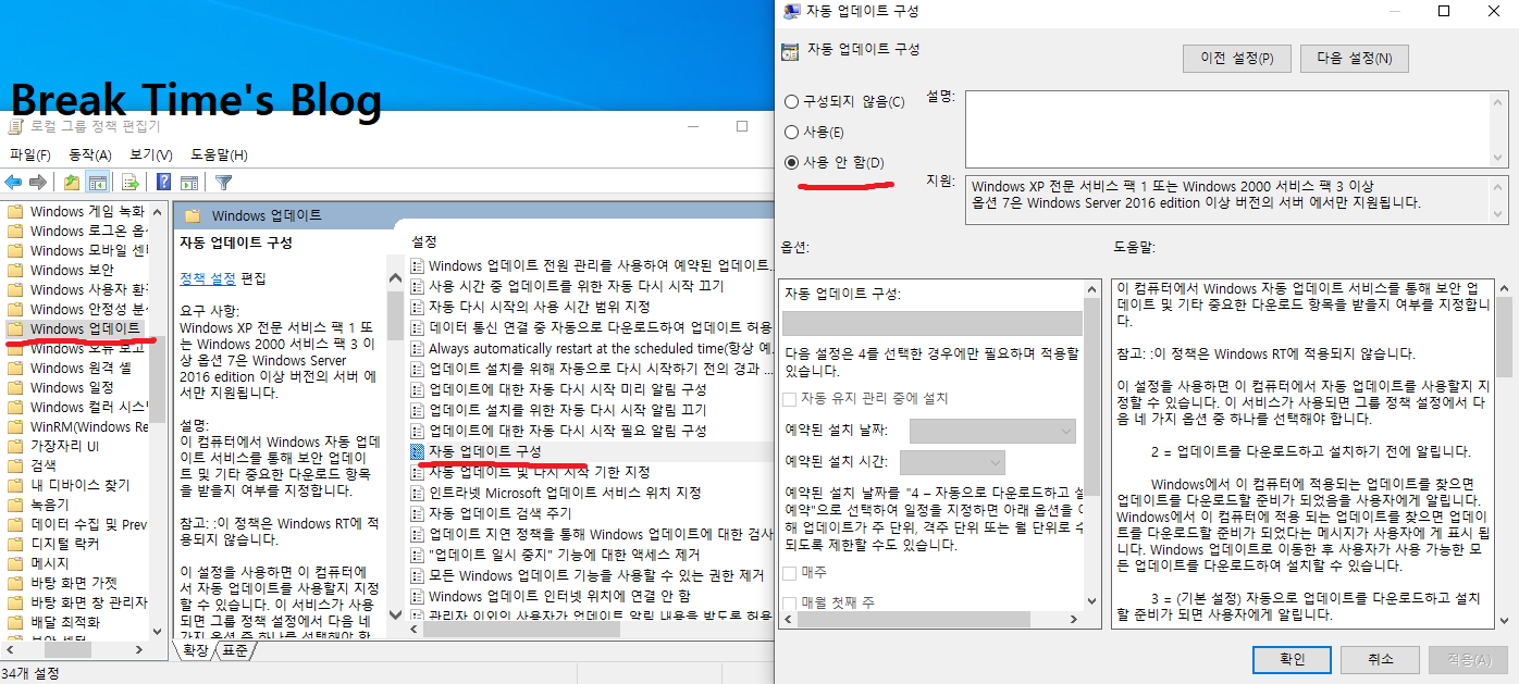 -사실 이건 이번에 처음해서 제대로 먹히는지 잘 모르겠습니다. 이전에도 한, 두번 시도해봤으나 어느새 윈도우10 업데이트가 되고 있길래 사실상 반 포기하고 생활했는데 다시 시도해봅니다.
