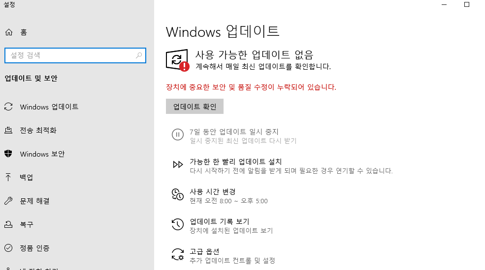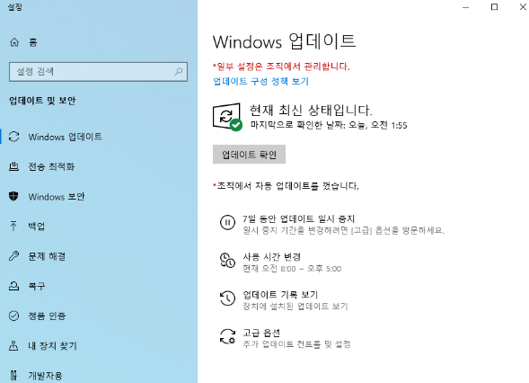 (* 조직에서 자동 업데이트를 껐습니다.)