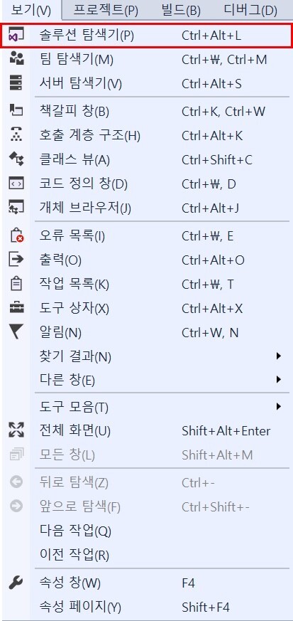 보기 - 솔루션 탐색기 눌러주면 다시 나타납니다!
