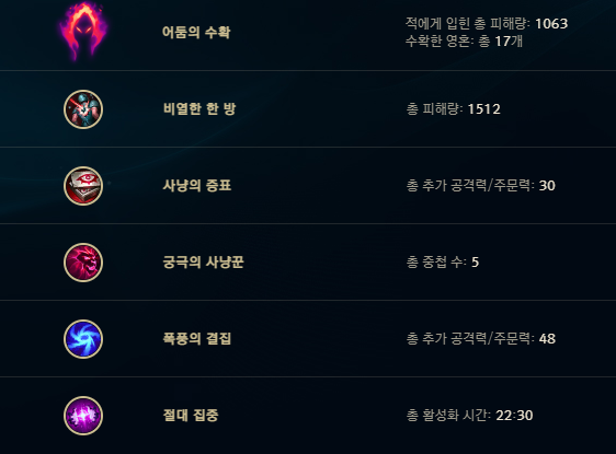 핵심은 어둠의 수확+ 궁극의 사냥꾼.