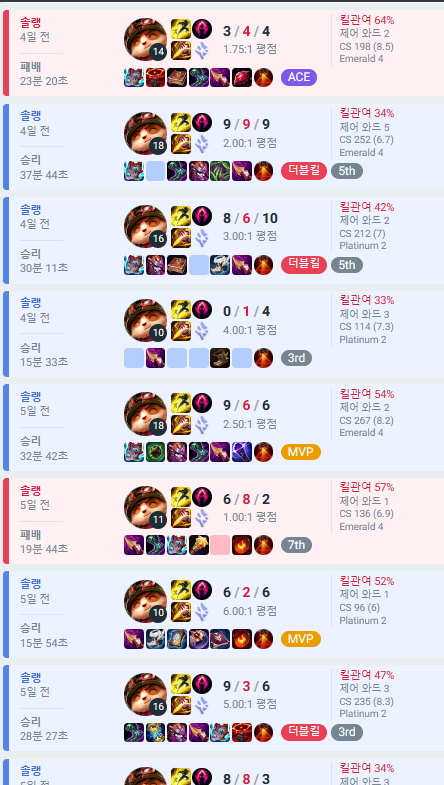 위 전적 사진처럼 14판을 하면서