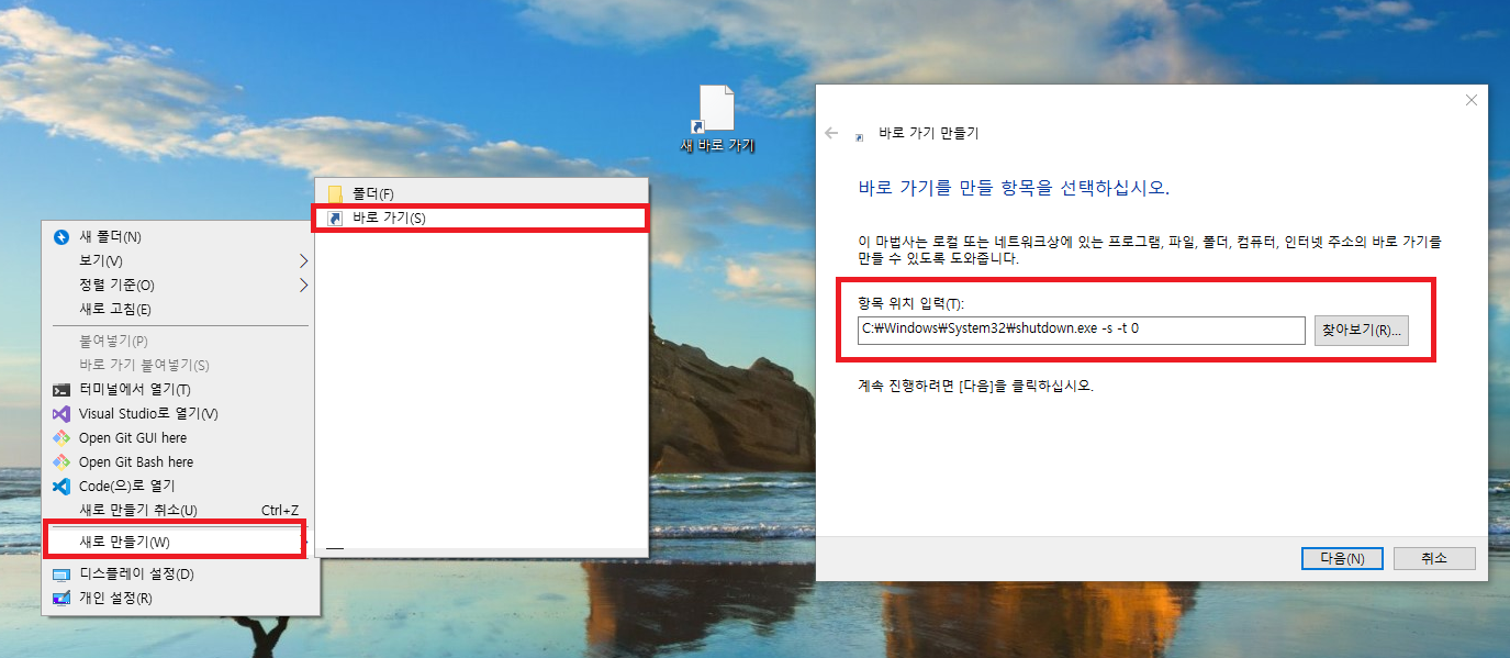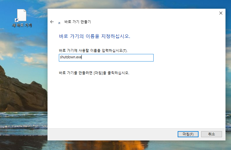 이후, 새로 만들어진 바로가기를 클릭하면 전원이 종료됩니다.