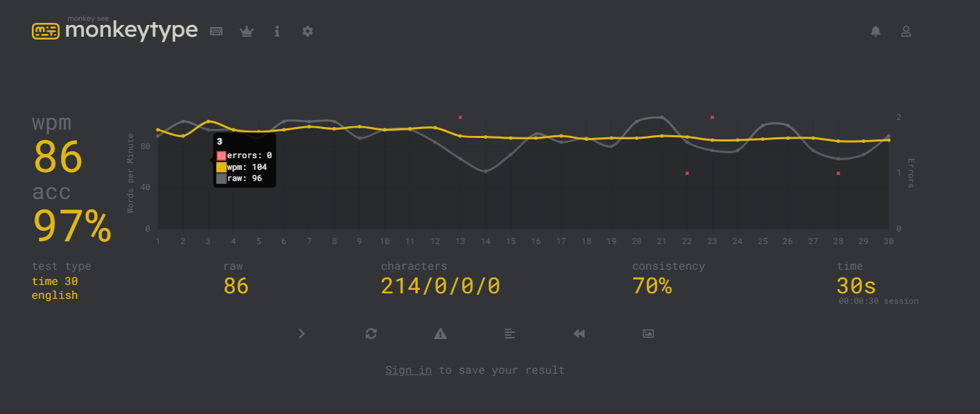 무한의 계단이라는 스마트폰 게임처럼 30초동안 최대한 많은 영어단어를 치는 사이트 입니다. 한글지원 없이 30초동안 얼마나 많이 치는가만 체크합니다. 30초 뒤에 결과화면을 볼 수 있어요.